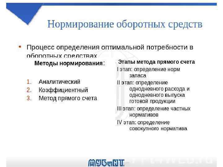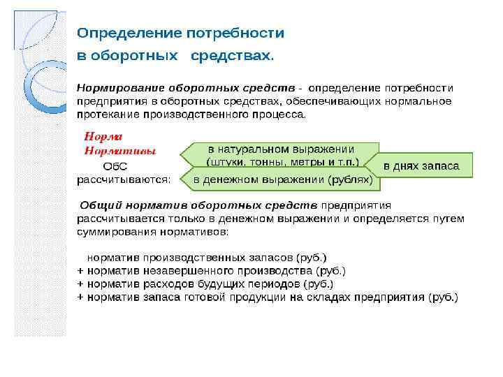 Виды потребности в оборотных средствах