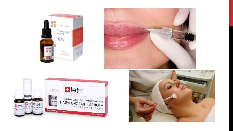 Для кожи это регулятор водного баланса. Молекулярная масса гиалуроновой кислоты колеблется от 200 до 400 тыс. (200 400 к. Да). При нанесении на кожу гиалуроновая кислота образует эластичную пленку, ограничивающую испарение влаги. В живом организме она расщепляется под действием фермента гиалуронидазы. Активность этого фермента увеличивается с возрастом, что объясняет дефицит гиалуроновой кислоты в стареющей коже, внешне выраженный в увядании кожи и появлении морщин.