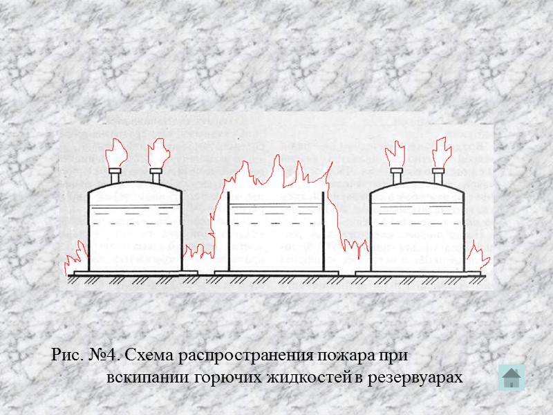 Рис. №4. Схема распространения пожара при вскипании горючих жидкостей в резервуарах