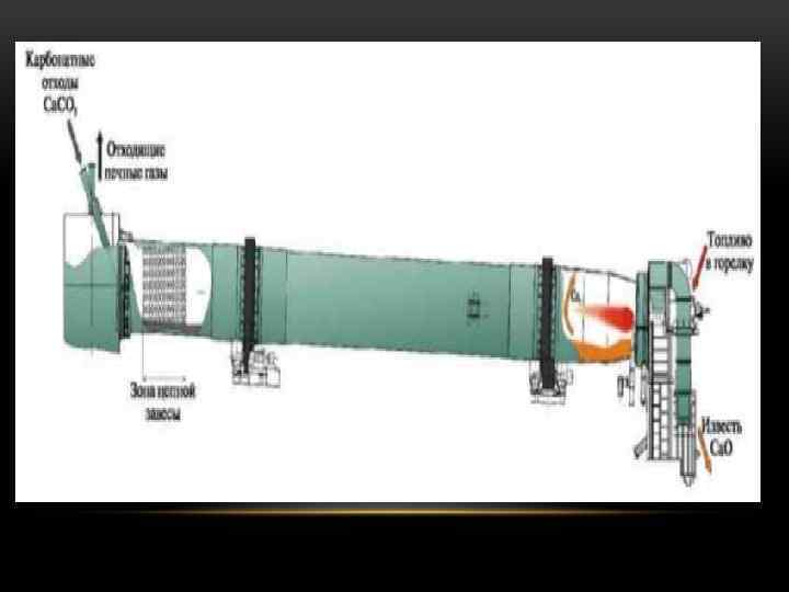 Для обжига извести применяют вращающиеся печи длиной 30— 100 м, диаметром 2— 4 м, с углом наклона 3— 4° и частотой вращения 0, 5— 1, 2 об/мин. Удельная суточная производительность их достигает 500— 700 кг/м 3 в расчете на пряный объем обжигательного барабана. С увеличением длины печей производительность их возрастает, а расход топлива снижается. Для уменьшения расхода топлива на обжиг извести во вращающихся печах и для утилизации теплоты газов, выходящих из печей с температурой 750— 800 °С, применяют разные способы. В частности, за печами ставят нагреватели, в которые направляют предназначенный для обжига кусковой материал. Отсюда с температурой 500— 800 РС он поступает во вращающуюся печь, а из нее в холодильник. При таком способе работы печи расход теплоты на обжиг снижается до 4600— 5030 к. Дж/кг извести. Применяют самые разные конструкции нагревателей сырья (шахтные, ступенчатые, циклонные и т. п. ). Работают они за счет теплоты отходящих газов. Созданы также установки, представляющие собой сочетание шахтной печи диаметром до 6— 8 м с вращающейся печыо диаметром около 2, 5 м. При этом мелкокусковой фракционированный известняк обжигается на 80 % в шахте с применением кокса и окончательно — во вращающейся печи. Суточная производительность подобной установки достигает 400— 500 т при затрате теплоты около 4200 к. Дж/кг. В последние годы ведется интенсивная разработка способов и установок,