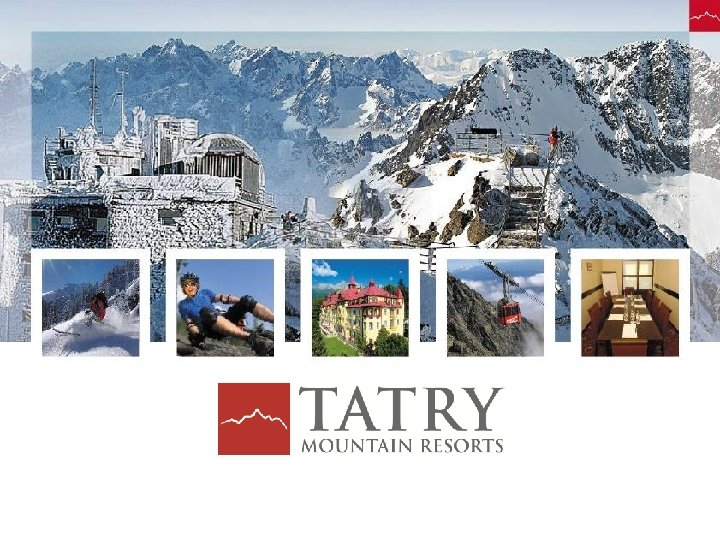 Horské strediská TMR • Vysoké Tatry (Tatranská Lomnica, Štrbské Pleso, Starý Smokovec) • • luxusné celoročné stredisko cestovného ruchu poskytujúce kvalitné komplexné služby v lete i v zime Nízke Tatry (Jasná, Chopok Juh) • najväčšie zimné športové stredisko v strednej Európe