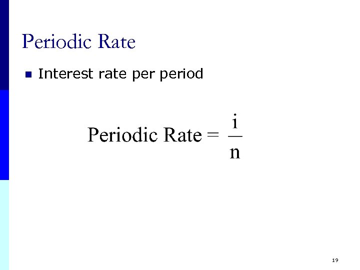How Interest Rates Are Quoted (And Misquoted) n Interest Rates Periodic Rate n Annual Percentage Rate n Effective Annual Rate (EAR) n 18