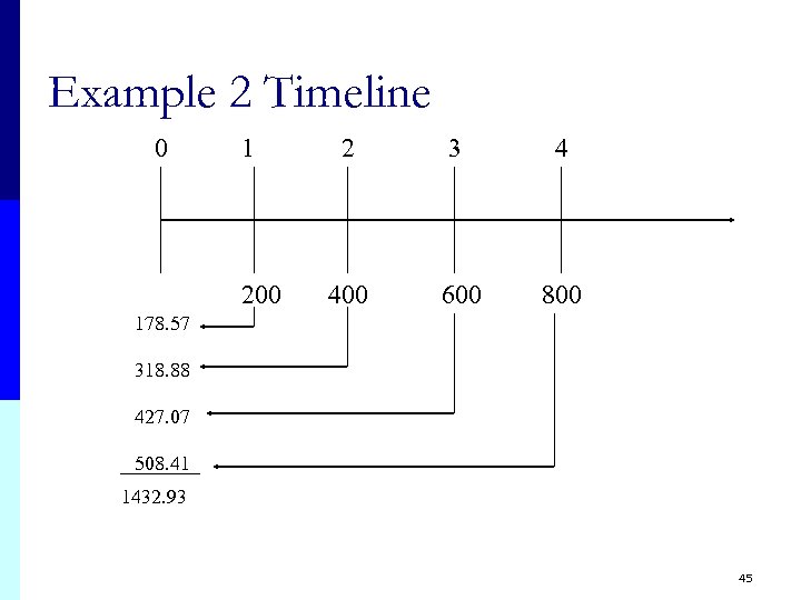 Example 2 Timeline 0 1 200 2 3 4 400 600 800 178. 57 318. 88 427. 07 508. 41 1432. 93 45