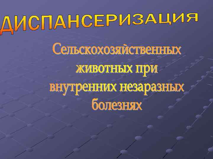 Диспансеризация – это система плановых диагностических, лечебно-профилактических и организационно – хозяйственных мероприятий, направленных на выявление скрытых и выраженных клинических симптомов заболеваний, их лечение и профилактику. Цель диспансеризации – сохранение здоровья животных, повышение их продуктивности и создание на этой основе здоровых, высокопродуктивных стад, с высоким уровнем естественной резистентности.