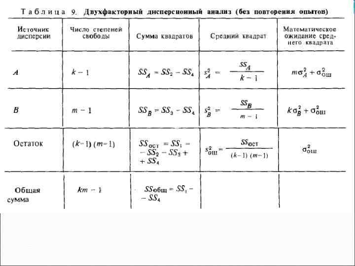 7) SSост - остаточная сумма квадратов для оценки ошибки эксперимента 8) дисперсия 9) дисперсия