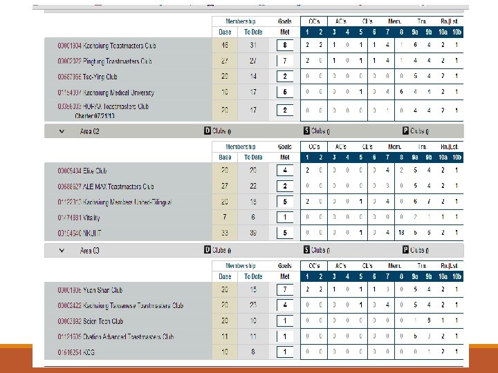 Division B Governor – Alice Li 1. New club : No 2. Weak clubs : DBTC and YTC, but regular meetings are maintained. 3. up-to-date membership : 125 (CHTC hasn't done renewal, but will do in a few days. ) 4. DCP status (target): WTC 8, TTC 10, AUTC 7, DBTC 4, YTC 6, CHTC 6, NTTC 9, BTC 8, BTTC 7 72
