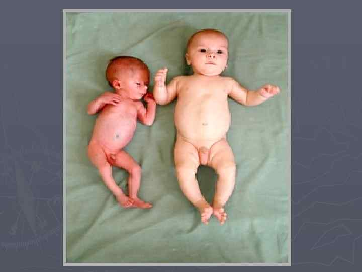 Формы гипотрофии ► По времени возникновения: § Пренатальная (задержка внутриутробного развития) § Постнатальная § Смешанная (пренатально-постнатальная) В зависимости от этиологических факторов: § Экзогенная § Эндогенная
