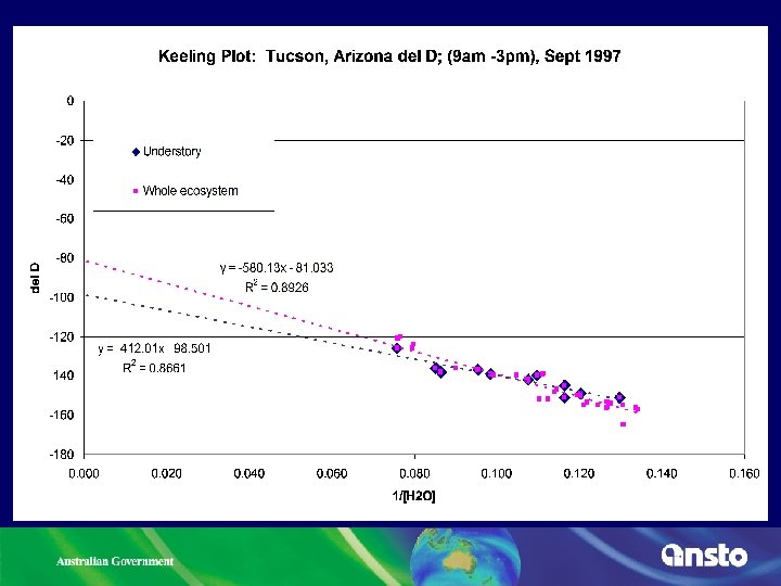 Conclusions • Semi-arid Israel and North America Ø Israel: vapour<stem<leaf enrichment at optimum Ø Arizona: vapour became depleted during the day Ø Keeling plot analysis, using both 2 H and 18 O indicates transpiration predominant flux of return vapour to atmosphere