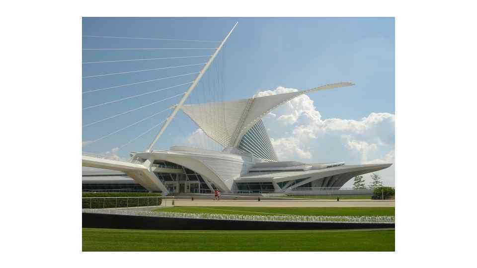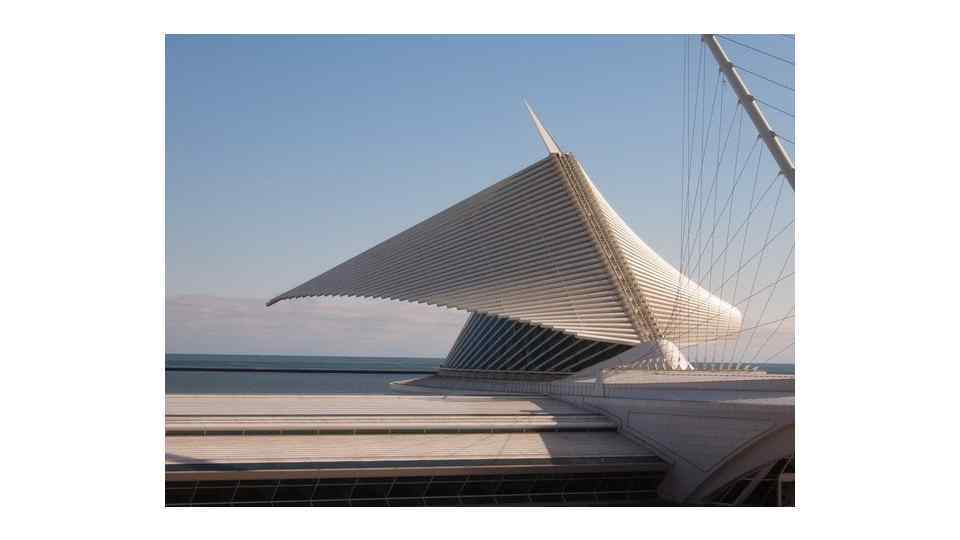 Музей искусств Милуоки, который находится в штате Мичиган, США, местные жители называют «крылатым зданием» . На его крыше находится гигантский солнцезащитный экран, похожий на два крыла, так что постройка напоминает фигуру взлетающей птицы, которая направляется к озеру Мичиган. «Крылья» музея раскрываются на солнце и складываются ночью и в пасмурную погоду. В развернутом состоянии их размах составляет 66 м. Музей искусств Милуоки стал первой работой Сантьяго Калатравы в США, которая и принесла ему известность в Северной Америке.