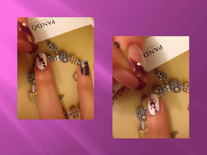1 способ. (повседневный) Для того чтобы получить подобный рисунок, вам понадобится: 1)прозрачного цвета лак 2)лак для ногтей темного цвета(здесь вишневый) 3)иголка