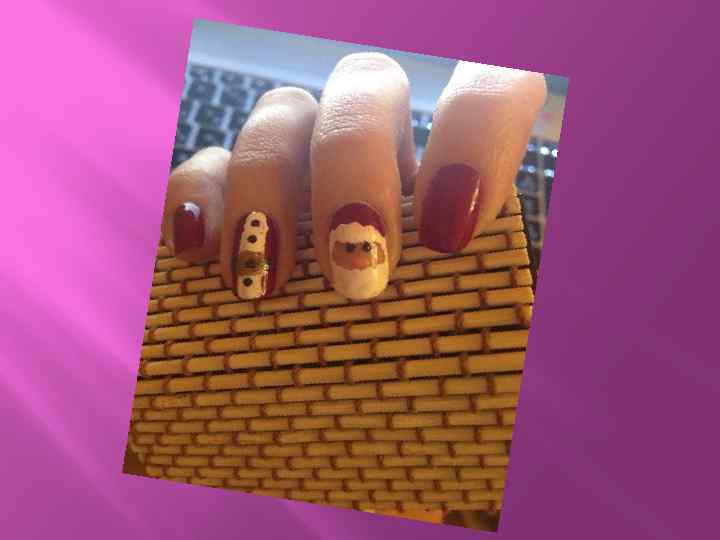 1. КРАСИМ НОГОТЬ КРАСНЫМ ДО ПОЛНОГО ВЫСЫХАНИЯ. 2. ОБЫЧНОЙ КИСТОЧКОЙ ДЛЯ РИСОВАНИЯ БЕЛЫМ ЦВЕТОМ ПРОВОДИМ ВЕРТИКАЛЬНУЮ ПОЛОСУ