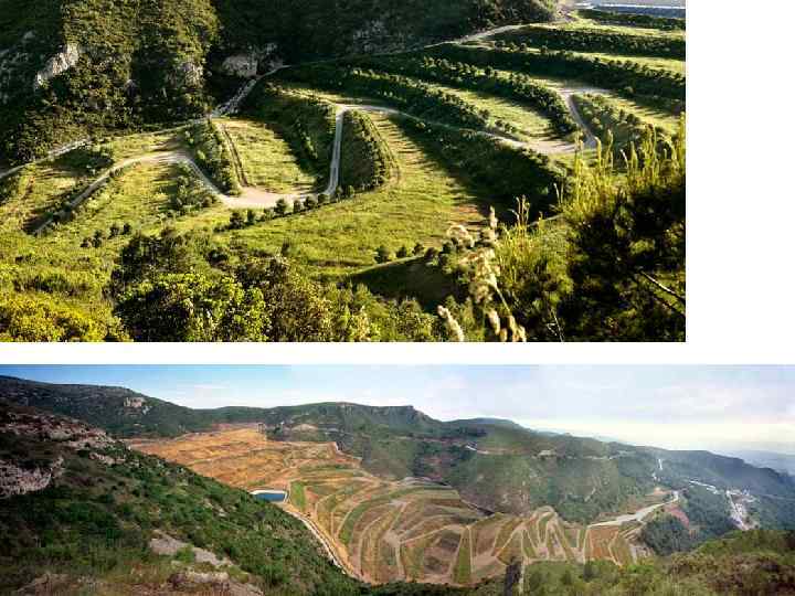 Террасирование – формирование горизонтальных уступов (террас), укрепленных подпорными стенками. Это проектное решение помогает защитить землю от почвенной эрозии и предотвратят от размывания почвы. Поверхность террасированных склонов одерновывают, засевают травами, засаживают кустарниками и деревьями, корни которых создают армированную среду, препятствующую образованию подвижки грунтов.
