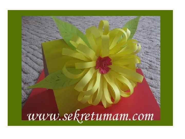 Для того, чтобы сделать эту аппликацию к 8 марта нам понадобилось: - цветная двусторонняя бумага - цветной картон - ножницы - линейка - клей-карандаш - ручка Теперь, что мы делаем и в какой последовательности. Наш сюжет – цветок, напоминающий праздничный бант с зелеными листиками, украшающий открытку.