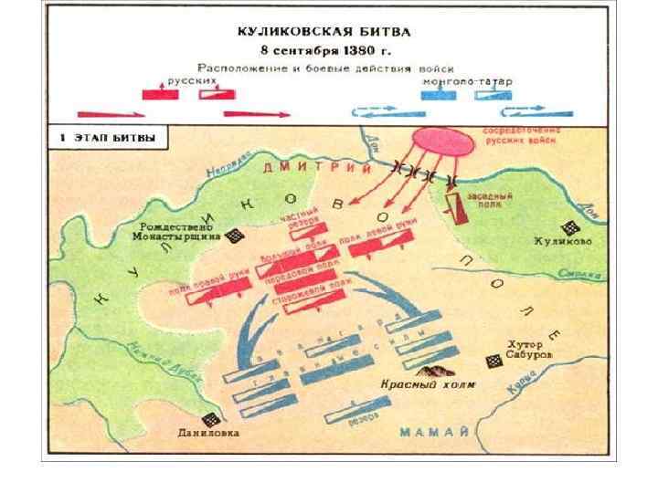 Куликовская битва 8 сентября 1380. Поход Мамая на Русь: Союзники Орды: Ягайло – литовский князь, Олег – рязанский князь.