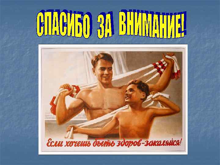 В этих случаях следует временно отказаться от закаливающих процедур и возобновить их по окончании заболевания: n менее интенсивными n менее продолжительными
