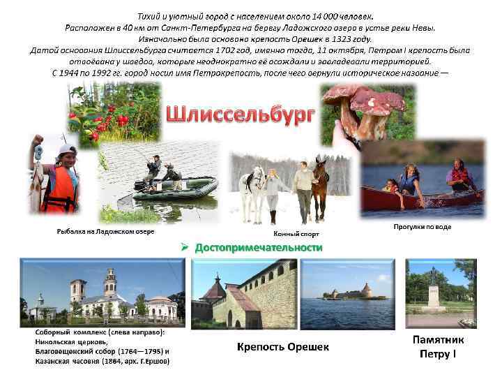 Добраться до г. Шлиссельбурга можно от ст. м. Улица Дыбенко: • автобус № 575 40 мин. - 1 час в пути (65 р. ) ст. м. Рыбацкое: • автобус № 440 1 час в пути (120 р. ) На автомобиле 33 км от съезда с КАД на Мурманское шоссе