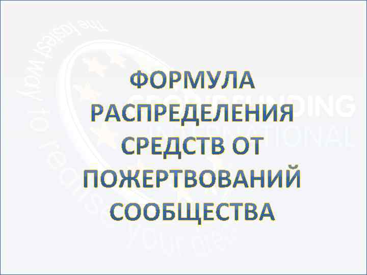 Формула «отдай» , потом «получи» Сейчас вы можете получить неограниченный фонд для вашего проекта или личной мечты. И делясь этой возможностью, вы так же сможете помочь близким вам людям. С первого уровня вы получаете 100% пожертвований от ваших приглашенных владельцев проектов. Уровни 2 -9 дают пожертвования от всех владельцев проектов по уникальной формуле 50% - 25% которую мы рассмотрим ниже.