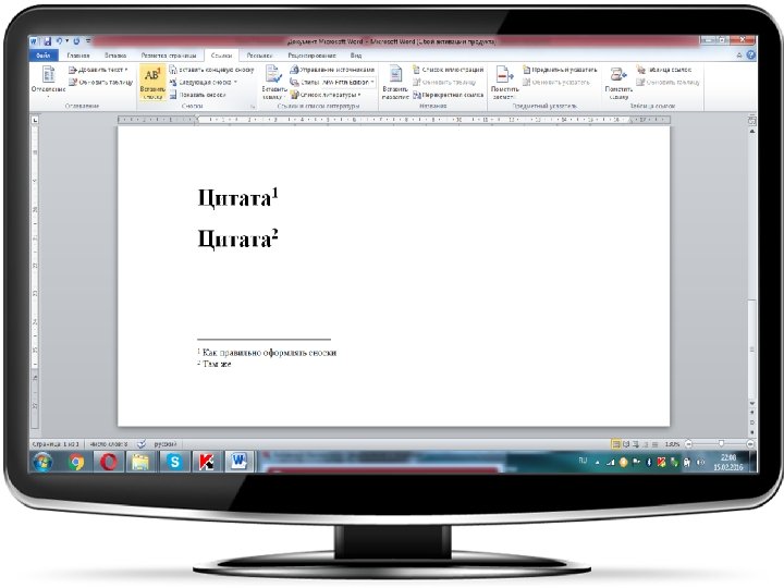 Сноски При создании различного рода текстовых документов в Word, часто возникает необходимость сделать сноску. Подобные сноски позволяют упорядочить содержание документа, придать ему более удобочитаемый вид, и решить ряд других задач по организации текста. Сноски бывают как обычными, которые оформляются на текущей странице, так и концевыми – в этом случае, все сноски выставляются в конце текстового документа. Принцип их добавления в текст следующий. Для того, чтобы создать на странице обычную сноску, нужно открыть главное меню и найти в нем группу «Ссылки» .