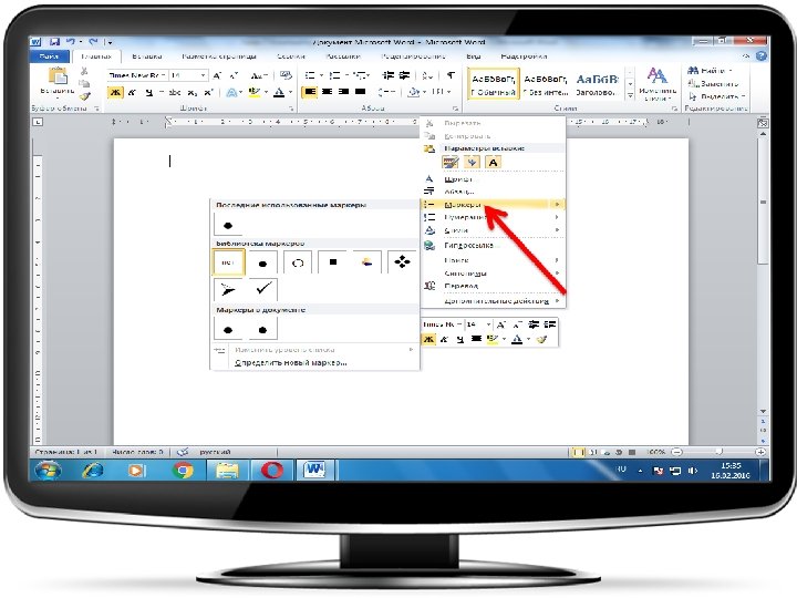 Быстро вставить маркированный список Для этого сначала нужно напечатать символ звездочки - * - Астериск, потом ввести пробел, напечатать ваше предложение и нажать клавишу Enter. Например: • Урок 1 • Урок 2 • Урок 3 • Урок 4 Или через клик на правую кнопку мышки.