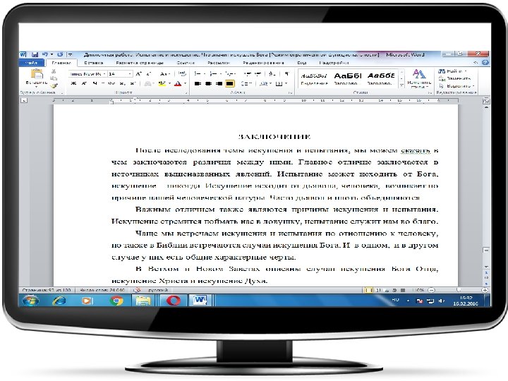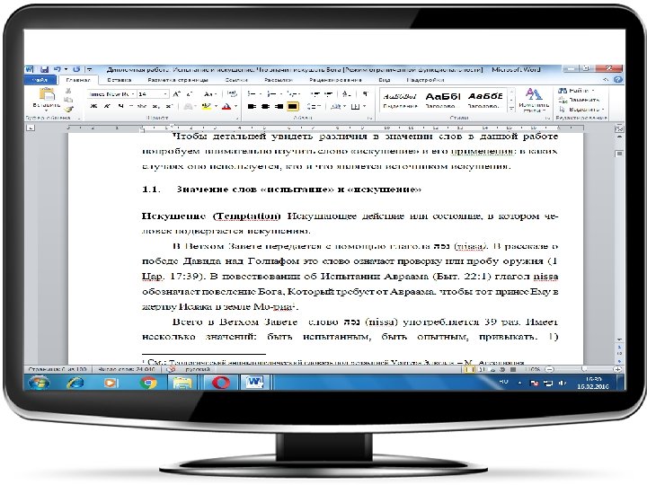 В созданном нами документе есть три уровня разделов: ВВЕДЕНИЕ 1. ИСПЫТАНИЕ И ИСКУШЕНИЕ 1. 1. Значение слов «испытание» и искушение 1. 2. Источник искушений 1. 2. 1. Участие Бога … … ЗАКЛЮЧЕНИЕ БИБЛИОГРАФИЯ