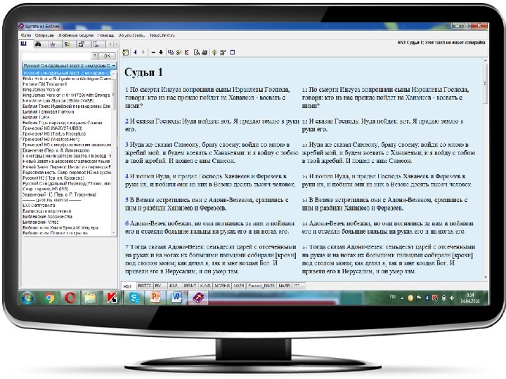 Программа является мощным инструментом для научной работы – включает все оригинальные тексты, почти все существующие переводы библии, в том числе русский и украинский. 14 версий на оригинальных (греческий и иврит) языках с 18 морфологическими базами данных (форма слова, возможные значения, синонимы и т. д. ). 12 словарей греческого, 5 еврейских словарей, различные инструменты для исследования библейского текста. Книги (на английском) по изучению иврита и греческого текста, комментарии на Библию (на английском), английский словарь.
