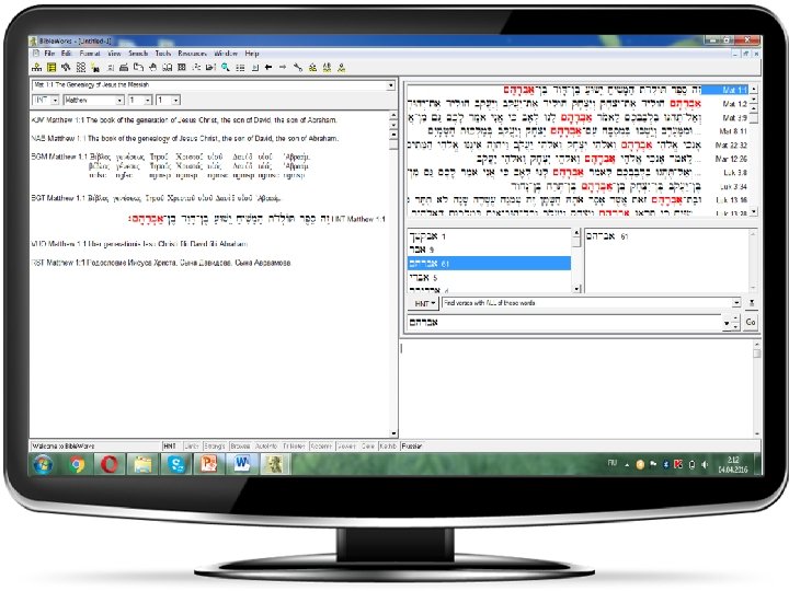 Лучшая программа для изучения филологических особенностей библейского текста. Она замечательна тем, что для каждого слова позволяет производить подробный анализ его языковой формы, а кроме того осуществлять поиск в библейском тексте не только по корню или форме слова, но и по шаблону — грамматической лемме. Это дает возможность исследователю Священного Писания обнаружить все вхождения того или иного слова в тексты Священного Писания (в отдельные книги или целиком в ветхо- или новозаветный раздел) и установить именно библейское значение слова.