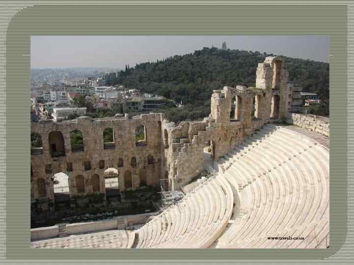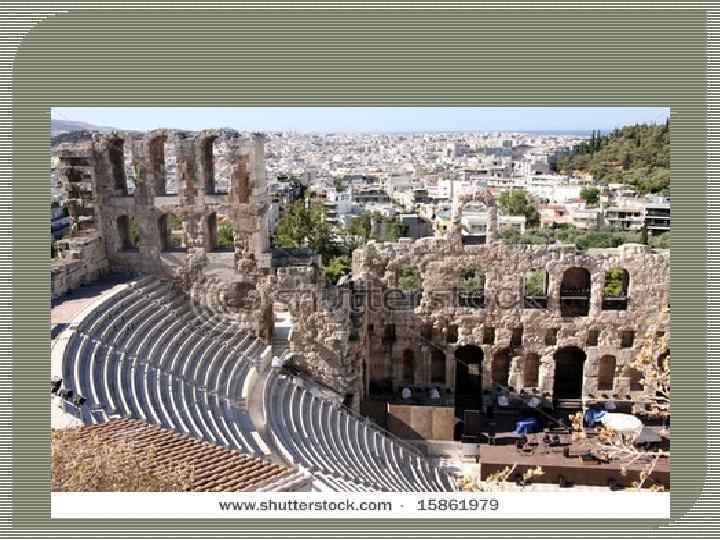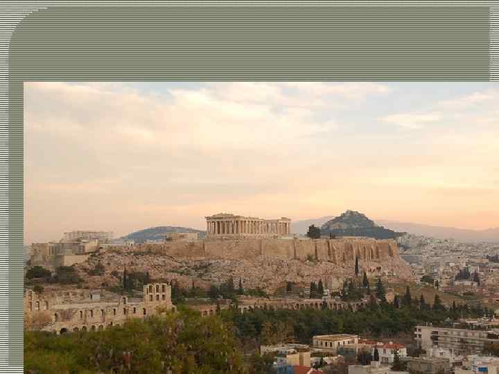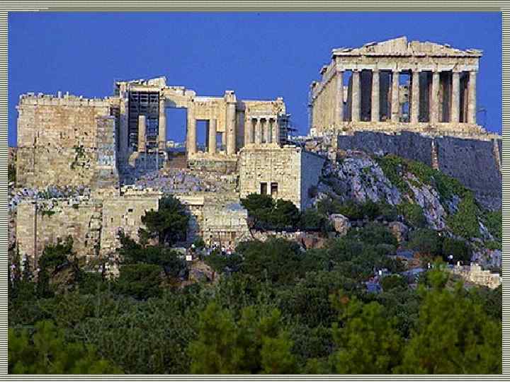 1. Пропилеи 2. Пинакотека 3. Храм Ники Аптерос 4. статуя Афины Промахос 5. Эрехтейон 6. Парфенон 7. театр Одеон. Афинский Акрополь в V в. до н. э. (реконструкция)