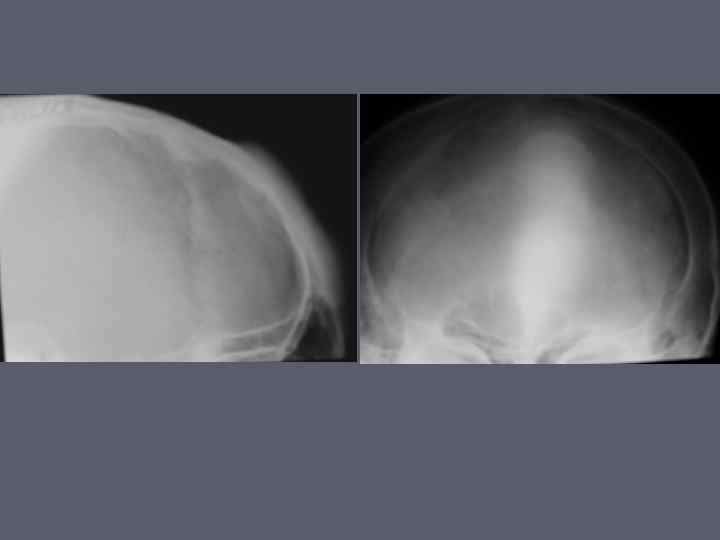 Губчатые остеомы на наружной и внутренней пластинках костей свода черепа.