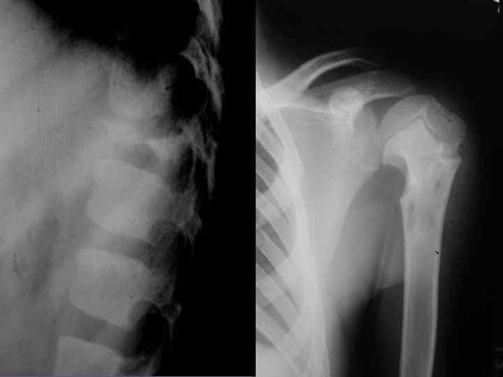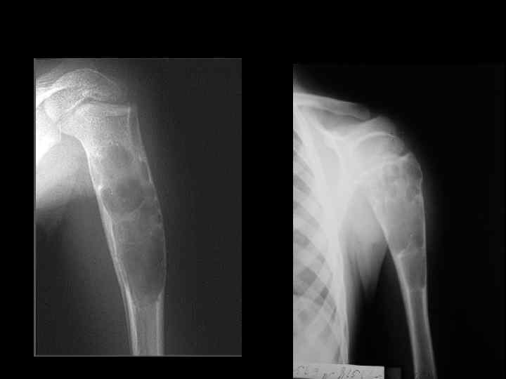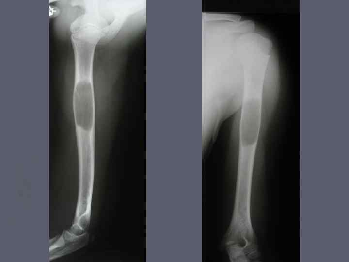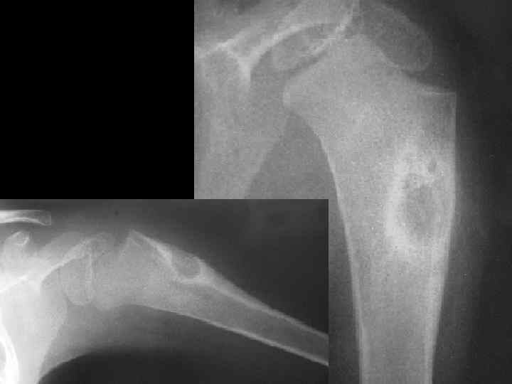 Опухолеподобные поражения • • • Солитарная костная киста Аневризмальная костная киста Метафизарный костный дефект Фиброзная дисплазия Оссифицирующий миозит Эозинофильная гранулема