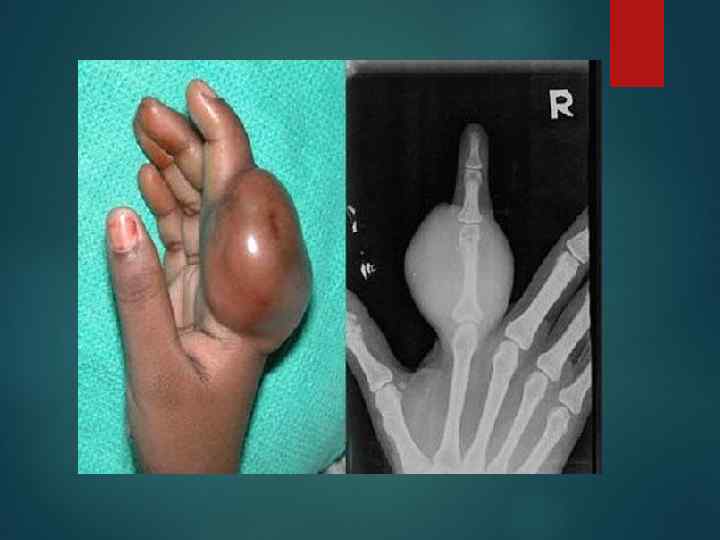 Клиника Симптомокомплекс костных опухолей складывается из трех кардинальных признаков: 1) болей в пораженном отделе скелета; 2) пальпируемой опухоли; 3) нарушения функции конечности.