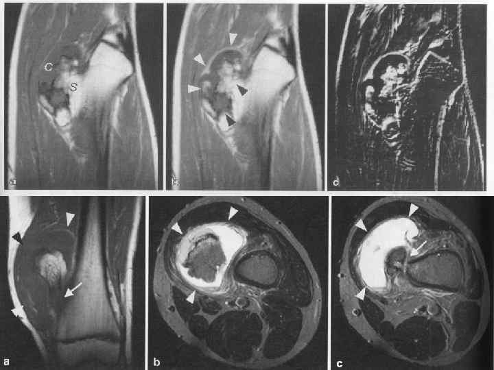 Ангиосаркомы – гемангиоэндотелиомы, гемангиоперицитомы, лимфангиосаркома. Картина злокачественного разрушения кости с большим мягкотканным компонентом.
