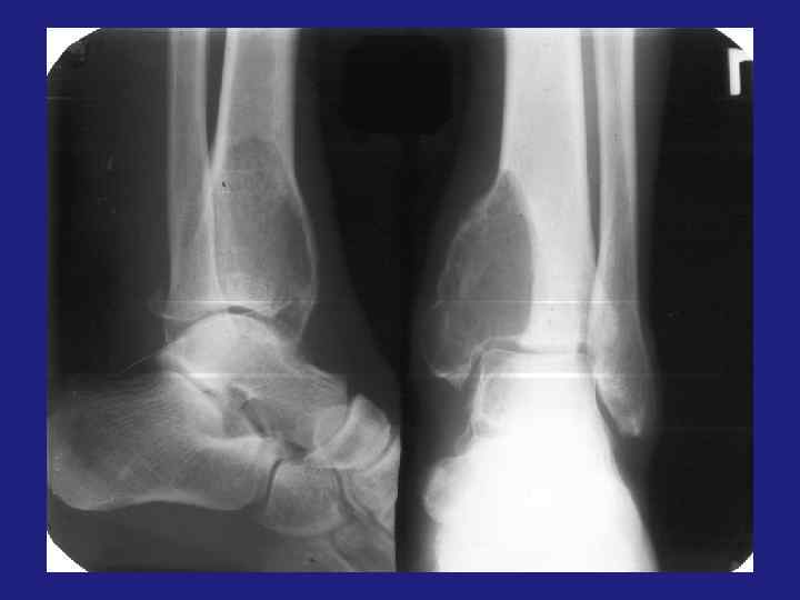 Остеобластокластома Дифференциальная диагностика: - Хондробластома - Аневризматическая киста - Энхондрома - Эозинофильная гранулема - Неоссифицированная фиброма - Костный ганглий -Туберкулезный остит -Хондромикс фиброма