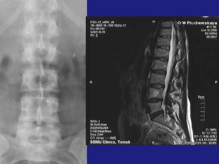 Особенности гемангиомы в позвоночнике: -Рассматривается как жиросодержащая опухоль, за счет экстраоссального жирового компонента, содержит метгемоглобин. МРТ – хорошо отграниченная структура округлой формы или поражение всего позвонка Т 1 и Т 2 – высокий сигнал