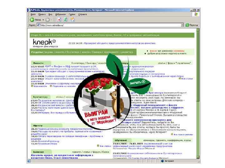 Появление медийной рекламы • 25. 10. 1994 - заложены основы современной медийной рекламы – компания AT&T разместила на сайте Hot. Wired первый в мире баннер (надпись размером 468 х60 pix гласила: «А Вы уже нажимали сюда? Вы нажмете!» ). Тот самый баннер – первый в Интернете