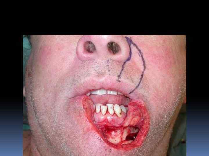 Рак губ Факторы риска развития рака губы: • Длительное воздействие неблагоприятных метеорологических факторов • Воздействие канцерогенных веществ эндогенной и экзогенной природы. • Вредные привычки: курение, алкоголь, жевание различных смесей. • Травмы красной каймы губ: vo Механические vo химические vo термические • Вирусные инфекции • Воспалительные и грибковые заболевания красной каймы губ. • Заболевания желудочно-кишечного тракта, печени. • Дефицит бета-каротинов, витаминов A, Е, С. • Предраковые заболевания