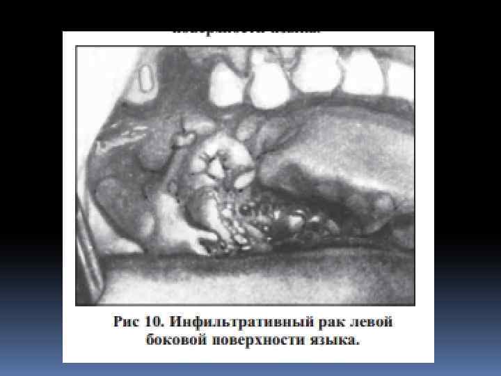 Рак сопр В рак слизистой оболочки полости рта входят: рак языка, слизистой дна полости рта, щек, твердого и мягкого неба, альвеолярного отростка верхней и нижней челюсти.
