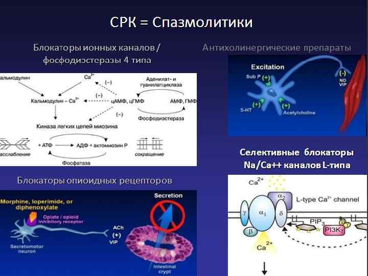 Спазмолитики, применяемые в гастроэнтерологии • Мебеверин является миотропным спазмолитиком двойного действия, который снимает спазм и не вызывает атонии. • мебеверин не действует на холинэргическую систему и поэтому не вызывает таких побочных эффектов как сухость во рту, нарушения зрения, тахикардия, задержка мочи, запоры и слабость. • При лечении органов пищеварительного тракта мебеверин более эффективен и имеет меньше побочных эффектов, чем дротаверин и папаверин.