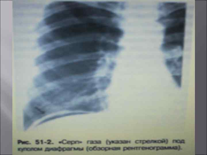Диагностика Экстренное выполнение обзорной рентгенографии органов брюшной полости стоя (поддиафрагмальных пространств) или лежа на левом боку (при тяжелом состоянии больного). В сомнительных случаях следует дать больному выпить 40 -60 мл водорастворимого контрастного вещества (кардиотраст, урографин, гипак и др. ) и повторить рентгенографию органов брюшной полости (определить наличие выхода контраста за пределы контура желудка) или через зонд ввести в желудок 300 -500 см 3 воздуха и сделать пневмогастрограмму.