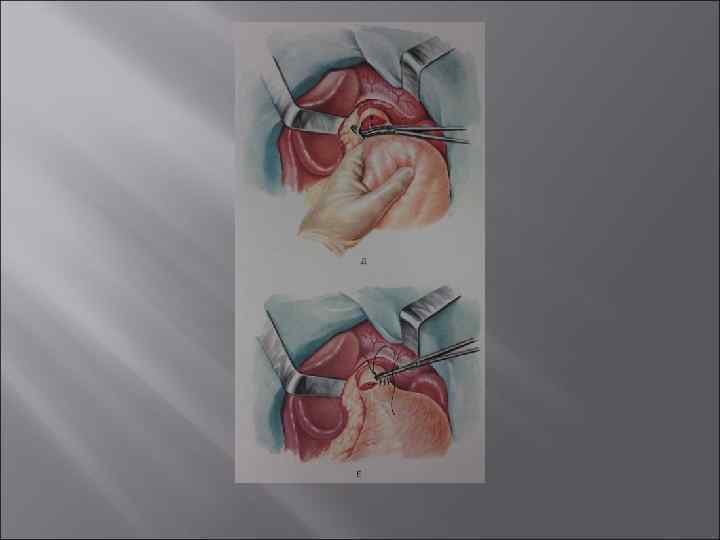 Лечение Перфорация язвы в свободную брюшную полость является абсолютным показанием к экстренной операции. Основная цель оперативного лечения: спасение жизни больного, предупреждение или раннее начало лечения перитонита.