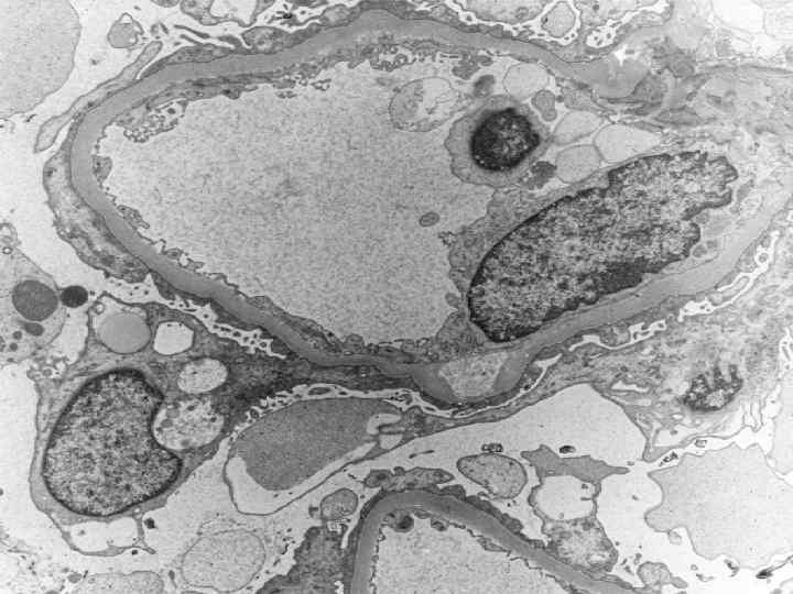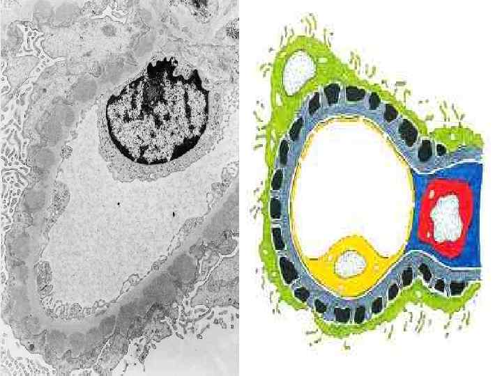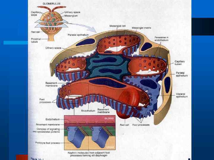 Нормальный капилляр клубочка Отростки подоцитов Базальная мембрана Просвет Эндотелиальная клетка Мезангиальный матрикс