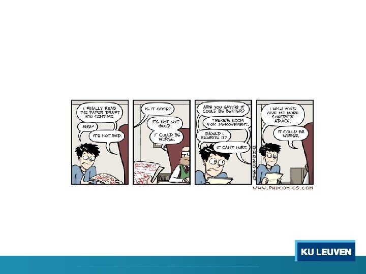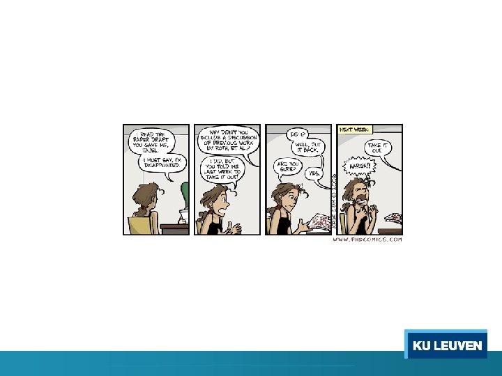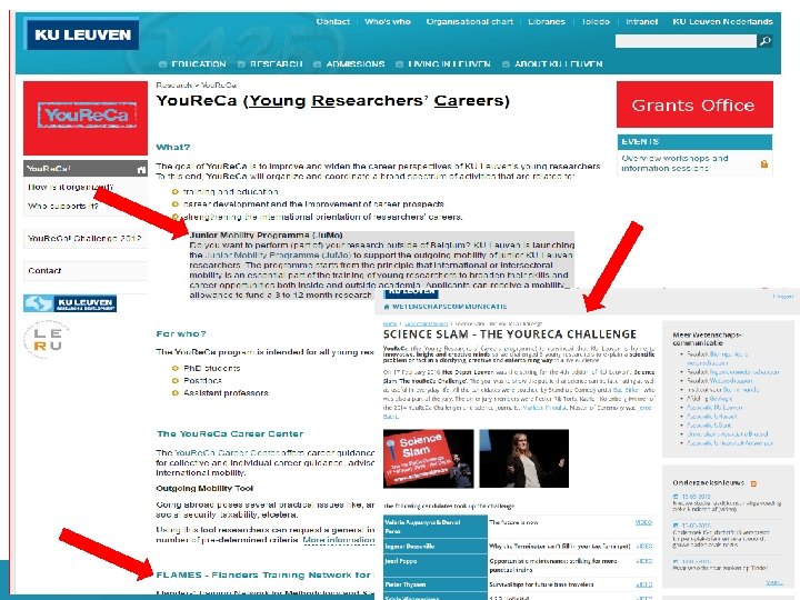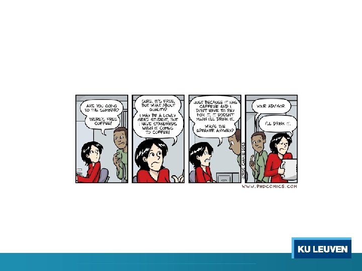 Specific Activities for Ph. D’s (‘doctoral classes’) q Overview of doctoral classes and activities at KU Leuven: o KU Leuven general: in Dutch; in English o Doctoral school Humanities and Social Sciences: • • o Activities – Training Modules 500 euro conference allowance! (Youreca funding) !Mandatory: scientific integrity for starting Ph. Ds: http: //www. kuleuven. be/research/integrity/culture/phd_lecture. html • Skills training: o ICTS: https: //admin. kuleuven. be/icts/english/trainings/eng_training o Teaching: http: //www. kuleuven. be/onderwijs/professionalisering o Methodology • KU LEUVEN: http: //lstat. kuleuven. be/training/index. htm • Flanders Training Network for Methodology and Statistics: http: //www. flamesstatistics. eu/training