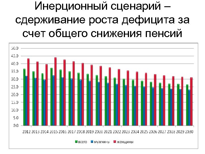 Инерционный сценарий – сдерживание роста дефицита за счет общего снижения пенсий