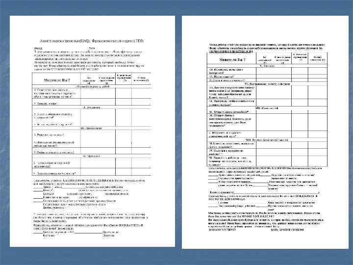 • Для более детального изучения этих аспектов применяются и специальные опросники, позволяющие оценить характер функциональных нарушений и снижение качества жизни(HAQ, SF-36 и др. ).