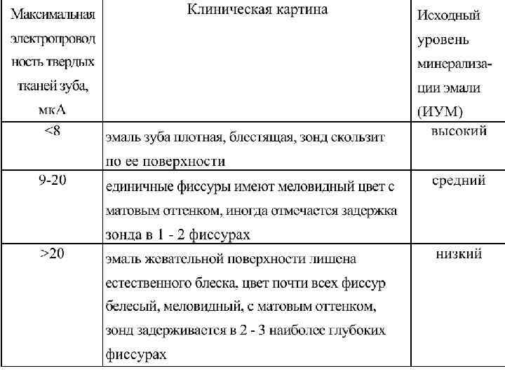 *При прорезывании зубов уровень их минерализации может быть различным. Доказано, что индивидуальный уровень минерализации твердых тканей, особенно в области фиссур, определяет динамику их созревания и поражаемость их кариесом (Леонтьев В. К. , Кисельникова Л. П. 1995; Бояркина Е. С. , 2009). В настоящее время актуально продолжение изучения этого факта с целью планирования адекватного лечения и профилактики кариеса постоянных зубов.