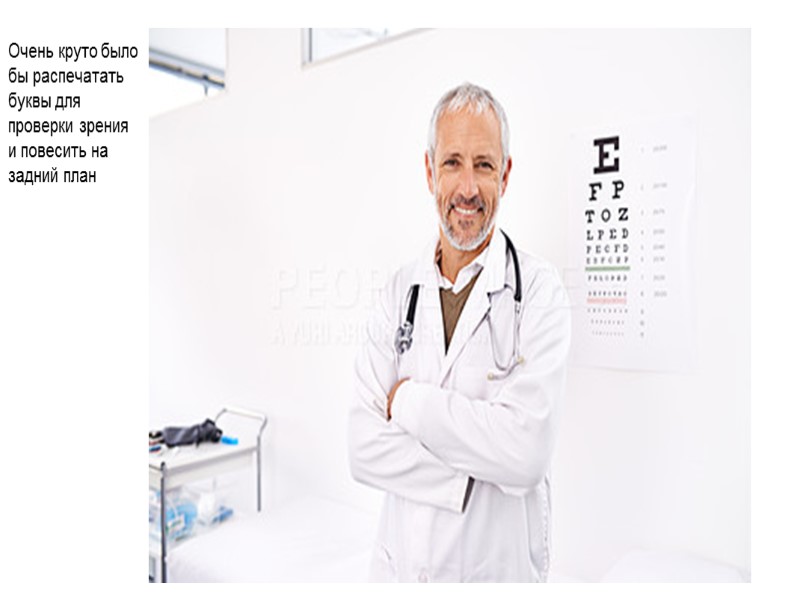 Очень круто было бы распечатать буквы для проверки зрения и повесить на задний план