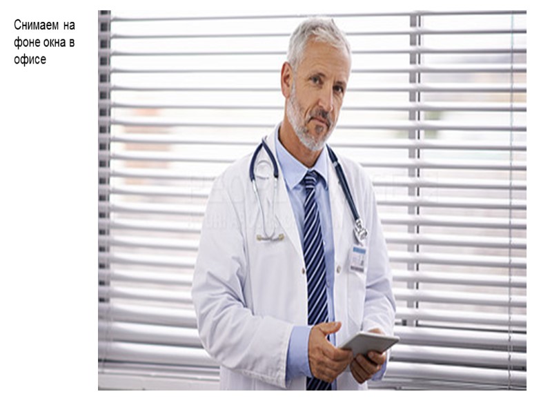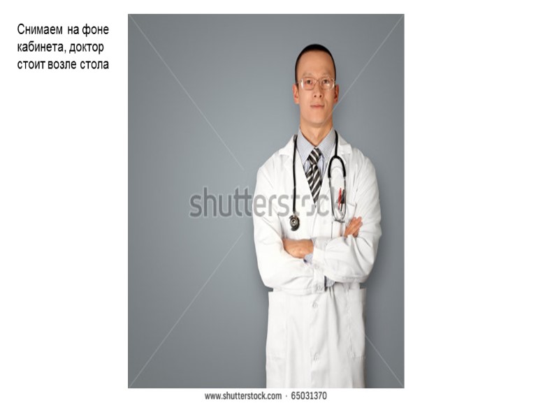 Снимаем на фоне кабинета, доктор стоит возле стола