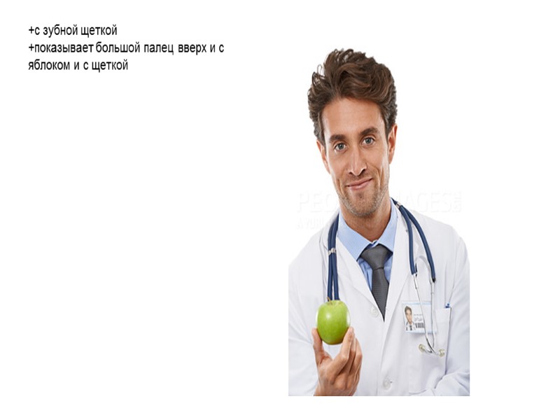 +с зубной щеткой +показывает большой палец вверх и с яблоком и с щеткой