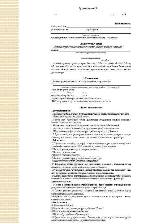 Трудовой договор (контракт) – соглашение между работником и работодателем, которое устанавливает их взаимные права и обязанности. Стандартное содержание трудового договора (ст. 57 ТК РФ): • ФИО сотрудника; • наименование работодателя; • сведения о документах, удостоверяющих личность; • место работы; • описание трудовой функции; • условия оплаты труда; • трудовой режим; • описание характера деятельности; • условия труда на рабочем месте; • условие об обязательном социальном страховании работника; • дата начала работы.