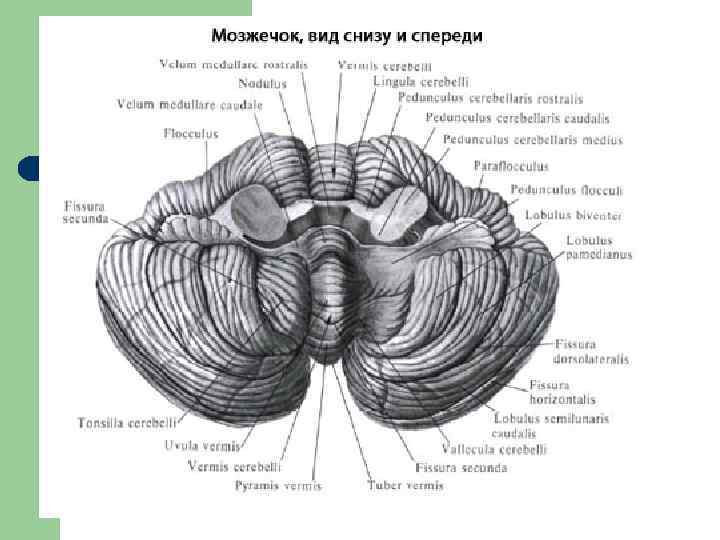 В задней части моста (покрышке) располагаются: l ретикулярная формация l ядра V, VII, VIII пар черепных нервов l проходят восходящие проводящие пути.