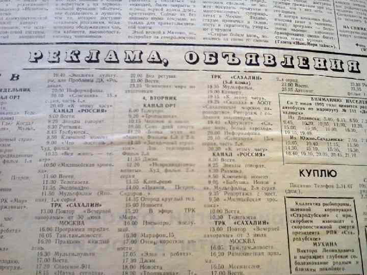 В одном из номеров : График на прием к администрации Сахалинской области